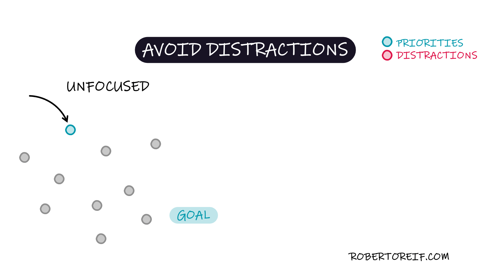 One of the greatest challenges to productivity when working toward a goal is dealing with distractions. To minimize distractions and maintain focus, we can: